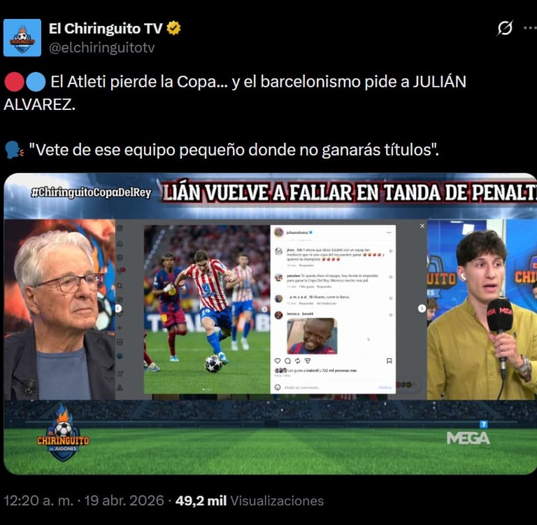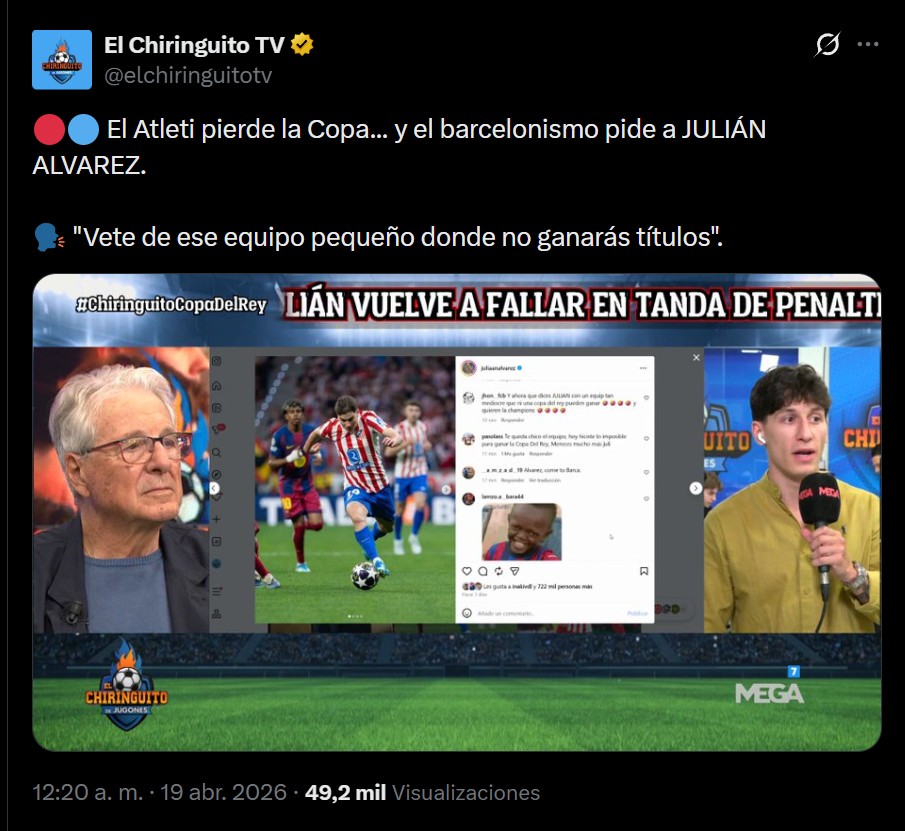 Y tras el batacazo en la final de Copa... Vuelve a sonar Julián Alvarez al Barcelona